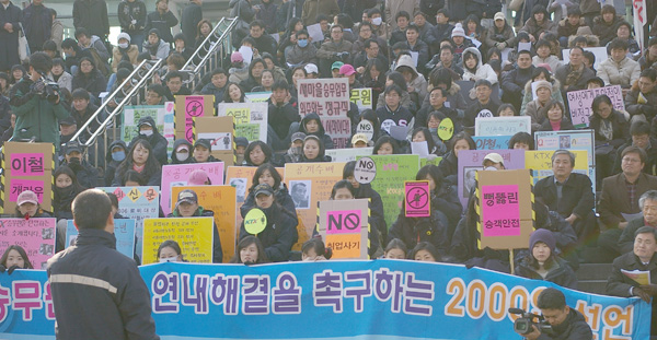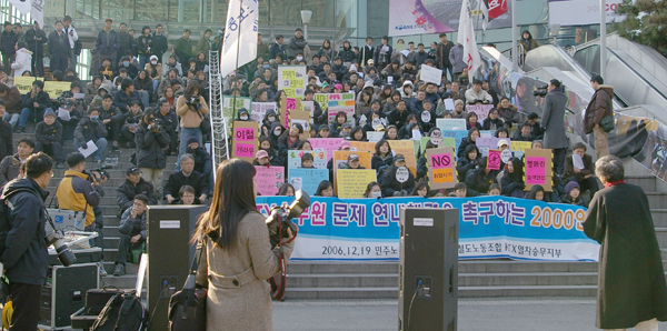 À̳¯ Çà»ç´Â ´çÃÊ 2,000ÀÎ ¼±¾ðÀ» ÁغñÇÏ¿´À¸³ª KTX ¿©½Â¹«¿ø ÅõÀïÀ» ÁöÁöÇÏ´Â ¸¹Àº ´Üü¿Í ÀλçµéÀÌ Âü¿©Çϰڴٴ ¿äûÀÌ ¼âµµÇÏ¿© 2,800¿©¸íÀ¸·Î ´Ã¾ú´Ù. ¶Ç À̳¯ ¼±¾ð½ÄÀº ÅõÀïÁßÀÎ »õ¸¶À»È£ ½Â¹«¿øµéµµ ÇÔ²²ÇØ Ã¶µµ°ø»çÀÇ ºñÁ¤±ÔÁ÷ È®´ë¹æÄ§¿¡ ³¡±îÁö ¸Â¼³ °ÍÀÓÀ» °áÀÇÇß´Ù. öµµ°ø»çÀÇ ºñÁ¤±ÔÁ÷ È®´ë¸¦ ±ÔźÇÏ´Â ¼±¾ð¹® ³¶µ¶ÀÌÈÄ Âü¼®ÀÚµéÀº û¿Í´ë¾Õ±îÁö ÇàÁø¿¡ ³ª¼¹´Ù. ±×·¯³ª Àεµ·Î ÇàÁøÇÏ´Â °ÍÁ¶Â÷ Çã¿ëÇÏÁö ¾Ê´Â °æÂûÀÇ °úÀ×Ãæ¼º¿¡ ÀÇÇØ Âü¼®ÀÚµéÀÇ ÇàÁøÀº °¡·Î¸·Çû´Ù.