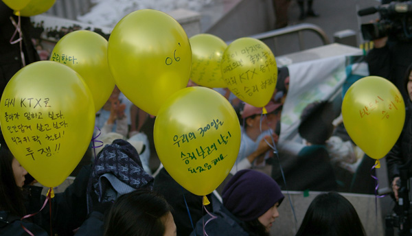 KTX ÆÄ¾÷ÅõÀï 1³â¿© µ¿¾È ¼ö¸¹Àº ´ÜüµéÀÌ ÁöÁöÇϰí ÇÔ²²ÇÏ¿´´Ù. ÃÖ±Ù SBS ¿©·ÐÁ¶»ç¿¡¼´Â ±¹¹ÎÀÇ 62.5% °¡ ¿©½Â¹«¿øÀÇ Á÷Á¢°í¿ëÀ» Âù¼ºÇÏ¿´´Ù. ½Ã¹ÎµéÀÇ ÁöÁö°¡ À̾îÁö°í ÀÖ´Â °¡¿îµ¥ KTX¿©½Â¹«¿øµé Á÷Á¢°í¿ë ¿¬³»ÇذᡯÀ» Ã˱¸ÇÏ´Â 2,800ÀÎ ¼±¾ðÀÌ ¼¿ï¿ª¿¡¼ ÀÖ¾ú´Ù.