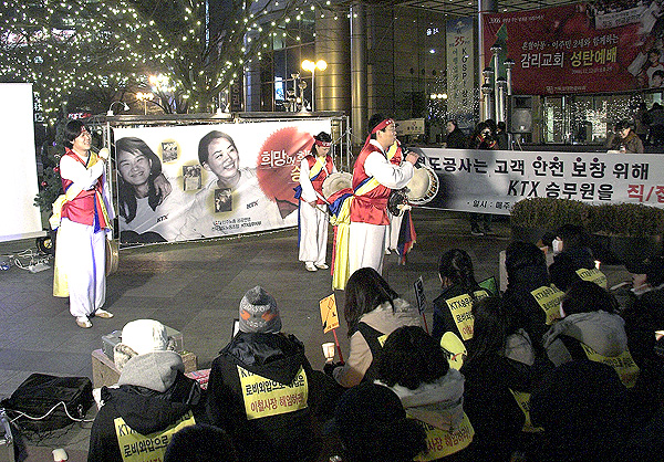 ±×¸®°í ÅõÀïÀÇ ÁÖüÀÎ ¿©½Â¹«¿øµéÀÌ Á÷Á¢³ª¿Í °ø¿¬À» ¼±º¸À̱⵵ ÇÏ¿´´Ù. °ø¿¬¿¡ ¾Õ¼ Àλ縦 ÇÑ KTX ¼¿ïÁöºÎ 1Á¶ Á¶ÇÕ¿øµéÀº ¡°300ÀÏ ¹®ÈÁ¦¸¦ À§ÇÏ¿© ½Ã¹ÎµéÀÌ ÁöÁöÇØÁØ ¼º¿ø¿¡ º¸´äÇÏ´Â ¸¶À½À¸·Î ÁغñÇÑ À²µ¿¡± À̶ó¸ç 300ÀÏ µ¿¾È ÅõÀïÇϸç Ã¼ÈµÈ ÀڽŵéÀÇ ¸öÁþÀ» º¸¿© ÁÖ¾ú´Ù.