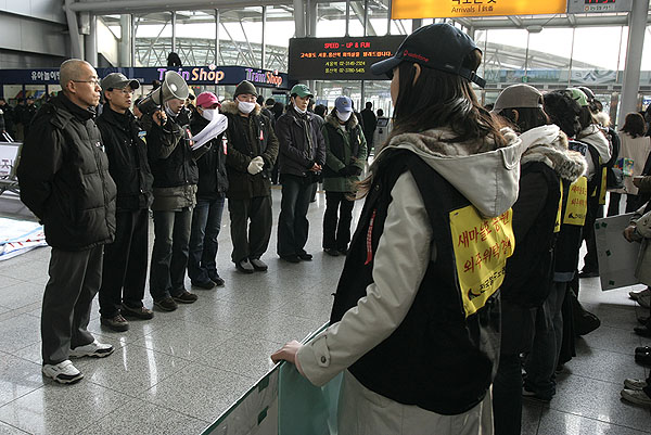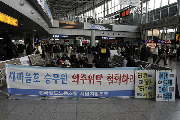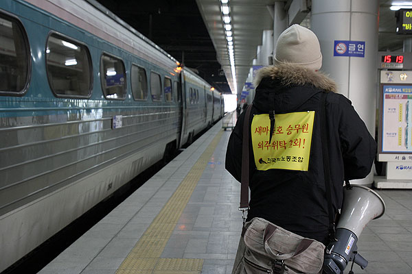 ¿ÜÁÖÈ ¹®Á¦´Â »õ¸¶À»È£ ½Â¹«¿ø¸¸ÀÇ ¹®Á¦¸¸ÀÌ ¾Æ´Ï¶ó ºñÁ¤±ÔÁ÷- Á¤±ÔÁ÷ ³ëµ¿ÀÚµéÀÌ °øµ¿À¸·Î ´À³¢´Â ¹®Á¦ÀÌ´Ù. À̳¯µµ ¸¹Àº Á¤±ÔÁ÷ ³ëµ¿ÀÚµéÀÌ Âü¿©ÇÏ¿´´Ù. ÀÌÀºÁø »õ¸¶À»È£ ´ëÇ¥´Â ¡°°í°´¿©·¯ºÐµéÀ» À§ÇÏ¿©, °ø»çÀÇ ¿ÜÁÖÈ Á¤Ã¥À¸·Î ´õ ÀÌ»ó °Å¸®·Î ³»¸ô¸®´Â »ç¶÷µéÀÌ ¾øµµ·Ï Çϱâ À§ÇÏ¿© »õ¸¶À»È£ ½Â¹«¾÷¹«¸¦ µÇã±â À§ÇÏ¿© ÅõÀïÇÒ °Í¡±À̶ó°í ¸»Çß´Ù.