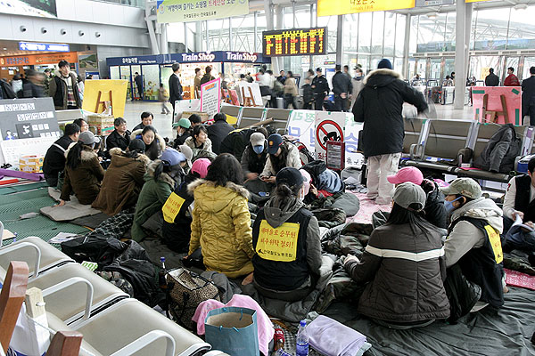´Ü½Ä³ó¼º¿¡ Âü¿©Çϰí ÀÖ´Â ±èÁ¤¿Á ½Â¹«¿øÀº Á¤¸» ¾ï¿ïÇÏ°í ºÐ³ë°¡ Ä¡¹Ð¾î ¹äÀ» ±¾¾î¼¶ó°í ÀڽŵéÀÇ Àǻ縦 ½Ã¹Îµé¿¡°Ô º¸¿©ÁÖ°í ½Í´Ù°í Çß´Ù. ´Ü½ÄÅõÀïÀÌ ÀÌ·¸°Ô Èûµç ÁÙ ¸ô¶ú´Ù¸ç ³²µéÀÌ ¹ä ±¾À» ¶§ÀÇ ½ÉÁ¤À» ÀÌÇØÇÒ ¼ö ÀÖÀ» °Í °°´Ù°í ¸»ÇÑ´Ù. ±è»ó¹Ì µ¿Áö´Â ¡°KTX ÅõÀïÀ» ÁöÄѺ¸¸é¼ ¼³¸¶ öµµ°ø»ç°¡ Á÷Àû°í¿ë ºñÁ¤±ÔÁ÷ ±îÁö ¿ÜÁÖÈ Çϸ®¶ó°í´Â »ý°¢ÇÏÁö ¸øÇß´Ù¡± °í ÇÑ´Ù. ±×·¯³ª ¡°KTX °ü±¤·¹Àú¿¡ ´ëÇÏ¿© ¹®Á¦¸¦ ¾Ë°í ÀÖ´Â »óȲ¿¡¼ ÅõÀïÀ» ¼±ÅÃÇÒ ¼ö¹Û¿¡ ´Þ¸® ¾ø¾ú´Ù¡± ¸ç ÅõÀï¿¡ Àü¸ÁÀ» ¸¸µé¾î ³ª°¥ °ÍÀ̶ó°í ÇÑ´Ù.