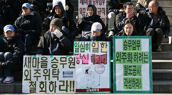 KTX ½Â¹«¿øµéÀÌ 1³â ¿©°£ ÅõÀïÁßÀÓ¿¡µµ ºÒ±¸Çϰí öµµ°ø»ç´Â »õ¸¶À»È£ ½Â¹«¾÷¹«¸¶Àú ¿ÜÁÖÈ ÇÏ¿© »õ¸¶À»È£ ½Â¹«¿øµéµµ Àå±âÅõÀïÀ» ÇÏ°Ô µÇ¾ú´Ù. »õ¸¶À»È£ ½Â¹«¿øµéÀº ¾ÖÃʺÎÅÍ ÅõÀïÀÌ ½±Áö ¾ÊÀ» °ÍÀ̶ó´Â °ÍÀ» ¾Ë¸é¼µµ ÅõÀïÀ» ¼±ÅÃÇÏ°Ô µÈ °ÍÀÌ´Ù. Á¤¸®Çذí´Â ÇÏÁö ¾Ê°Ú´Ù´ø ÀÌö»çÀåÀÇ ¹ß¾ðÀ» ¹Ï¾úÁö¸¸ °ø»ç´Â Áö»çº°·Î ¿©½Â¹«¿øµéÀ» ¿ÜÀ¯¿Í Çù¹ÚÀ¸·Î KTX °ü±¤·¹Àú·Î °¥ °ÍÀ» °¿äÇϰųª ¿ªÀ¸·Î ³»¸®°Ô ÇÔÀ¸·Î ¾Æ¾Ö »õ¸¶À»È£ ½Â¹«¾÷¹«¸¦ ÇÒ ¼ö ¾øµµ·Ï ÇÏ¿´´Ù.