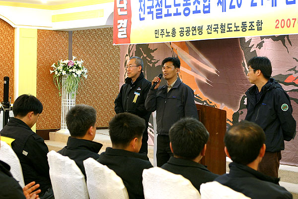 Ãà»ç¿¡ ³ª¼± ¹ÎÁÖ³ëÃÑ ÁÖºÀÈñ ºÎÀ§¿øÀåÀº ¡°Àϸ¸¹ø ¹«¼öÇÑ ±¸È£º¸´Ù ´ÜÇѹøÀÇ ½Â¸®¸¦ À§ÇØ Áø½ÇÇÑ ½ÇõÀ» ÇØ¾ß ÇÑ´Ù. ±×°ÍÀÌ ¹Ù·Î ÅõÀïÀÌ´Ù.¡±¶ó ¸»Çß°í, ´õºÒ¾î (Àü)Àü±âÇùÀÇÀå ¼¼±¿ø µ¿Áö´Â ¡°ÀÌÁ¦´Â ÀÌ±æ »ý°¢¸¸ ÇØ¾ß Çϰí, Èû¾øÀÌ ÅõÀïÇÏÁö ¸»°í ¼²ºÎ¸£°Ô ÆÄ¾÷ÇÏÁö ¸»¸ç, ±×·± ÅõÀï°ú ÆÄ¾÷Àº ¾È Çϴϸ¸ ¸øÇÏ´Ù¡±¸ç ¡°KTX ½Â¹« µ¿ÁöµéÀº 1³â ³Ñ°Ô ÆÄ¾÷ÅõÀïÇÏ°í ¸¸»èÀÇ µ¿Áöµµ ¿À´Ã ¿ª½Ã ÁÖüÀûÀ¸·Î ÅõÀïÇϴµ¥ ³ëµ¿ÀÚ°¡ ´ë¿ì ¹Þ°í Àß »ç´Â ¼¼»óÀ» ¸¸µé·Á¸é ½ÇõÇϰí ÅõÀïÇ϶󡱸ç Á¶ÇÕ¿øÀÇ ½ÇõºÎÁ·À» µû²ûÇÏ°Ô ÁúÃ¥Çϱ⵵ Çß´Ù.