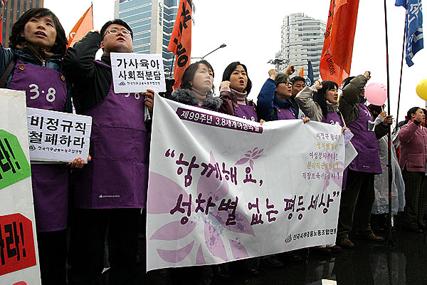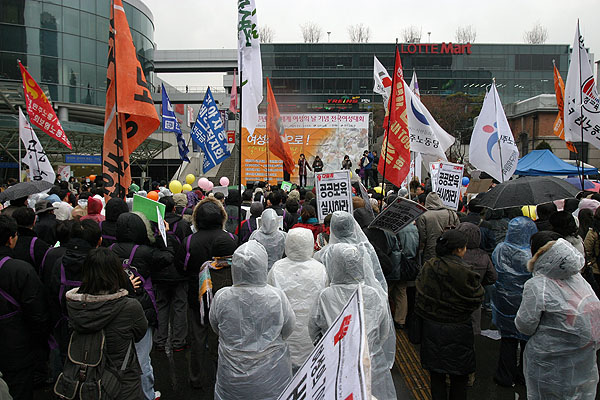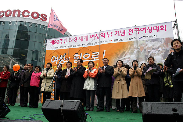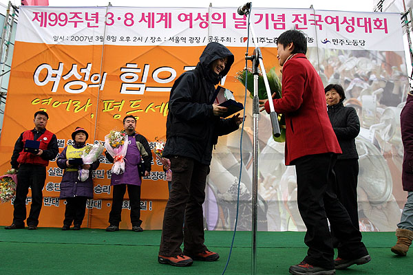 ¹ÎÁÖ³ëÃѰú Àü±¹¿©¼º³ó¹ÎȸÃÑ¿¬ÇÕ(ÀÌÇÏ Àü¿©³ó), ¹ÎÁֳ뵿´ç °øµ¿ ÁÖÃÖ·Î ¿¸° ÀÌ ³¯ ´ëȸ´Â Àü±¹¿¡¼ ¸ð¿©µç ¿©¼ºµé·Î ±¤ÀåÀÌ °¡µæ ¸Þ¿öÁ³À¸¸ç, ¡®¼ºÂ÷º°Ã¶Æó¿Í ºñÁ¤±ÔÁ÷ öÆó¡¯µîÀÇ °áÀÇ¿¡ ¸¹Àº ³²¼ºµéµµ µ¿ÂüÇß´Ù.
