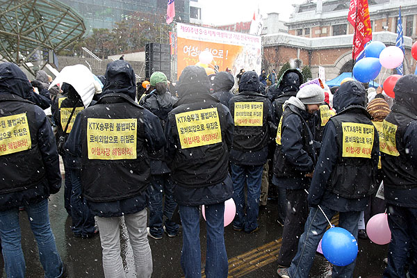 1³âÀ» Èǽ ³Ñ±â¸ç ²öÁú±â°Ô ÅõÀïÇϰí ÀÖ´Â ¹Î¼¼¿ø ¼¿ïKTX¿Â÷½Â¹«ÁöºÎÀåÀº ¡®Ã¶µµ°ø»ç °æ¿µÁøÀÇ ºñÁ¤±ÔÁ÷ ¹®Á¦¿¡ ´ëÇÑ ºñÀΰ£ÀûÀÌ°í ¸ô»ó½ÄÇÑ Åµµ¡¯¸¦ ¼ºÅäÇßÀ¸¸ç, ¡°Àΰ£¼Ò¿Ü¿Í Â÷º°ÀÌ »ç¶óÁø ¾Æ¸§´Ù¿î ¼¼»óÀ» ²Þ²Ù¸ç, ÀÌ ¼¼»ó¿¡ ¸ðµç ³ëµ¿ÀÚµéÀÇ ÅõÀïÀÌ ½Â¸®ÇÏ¿© ³ëµ¿ÀÚµéÀÌ ´ëÁ¢¹Þ°í Àß»ç´Â ¼¼»óÀ» ¹Ù¶õ´Ù¡±¸ç »õº½ÀÇ Èñ¸ÁÀ» ÀüÇß´Ù.