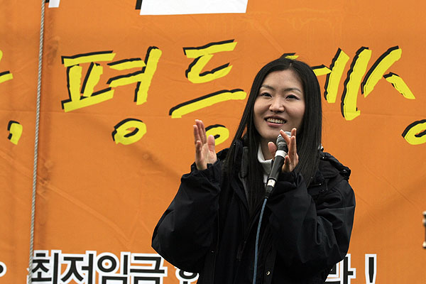 ¿¬´Ü¿¡ ¿À¸¥ ¹ÎÁÖ³ëÃÑ À̼®Çà À§¿øÀåÀº Æòµî¼¼»ó °Ç¼³À» À§ÇØ ¡®ºñÁ¤±ÔÁ÷ ¿©¼º³ëµ¿ÀÚÀÇ ÀúÀÓ±Ý ¹× Â÷º° öÆó¿Í °í¿ëȯ°æ °³¼±, ÃÖÀúÀÓ±ÝÀÇ Çö½ÇÈ¡¯ µîÀÇ ¼±¾ðÀ» ÇÏ¸ç °·ÂÈ÷ ÅõÀïÇÒ °ÍÀ» °áÀÇÇß´Ù.