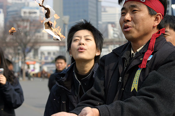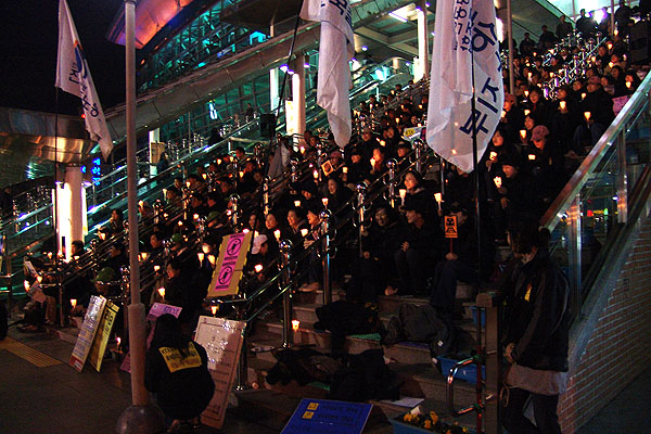 º½ÀÇ ¹®Åο¡¼ ºñÁ¤±ÔÁ÷ ÅõÀï ½Â¸®¸¦ ±â¿øÇϱâ À§ÇØ ¼¿ï¿ª±¤Àå¿¡ ¸ðÀÎ KTX¡¤»õ¸¶À»È£ ½Â¹«¿øµéÀº Àå±â°£ÀÇ Èû°Ü¿î ÅõÀï ÁßÀÓ¿¡µµ º½³¯º¸´Ù µû»ç·Î¿î ¹Ì¼Ò¸¦ °£Á÷Çϰí ÀÖ¾ú´Ù.