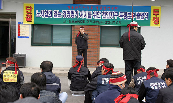 õ¾ÈÁö±¸ ÅõÀﺻºÎ Ãâ¹ü½Ä »çȸ¸¦ ¸ÃÀº ³²Áø¿ì ´ëÁöº» ±³¼±±¹ÀåÀº ¡°Ã¶µµ°ø»çÀÇ ¿ÜÁÖÀ§Å¹ µµ¹ß¿¡ ÅõÀï ¾øÀÌ ¹æ°üÇÏ°Ô µÇ¸é ¾ðÁ¨°¡´Â Á¤±ÔÁ÷ÀÇ ºñÁ¤±ÔÁ÷ȵµ °¡¼ÓµÉ ¼ö¹Û¿¡ ¾øÀ» °ÍÀÌ´Ù¡±¸ç Á¶ÇÕ¿øÀÇ ¿ÜÁÖÈ Ã¶È¸ ÅõÀï¿¡ ´ëÇÑ Àû±ØÀû µ¿ÂüÀ» È£¼ÒÇß´Ù.
