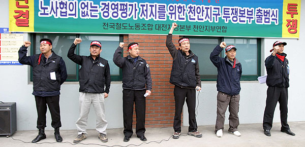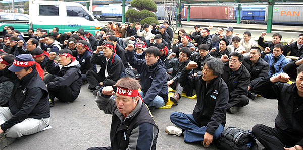 ÀÌ ³¯ ÅõÀﺻºÎ Ãâ¹ü½Ä¿¡ ¸ðÀÎ Á¶ÇÕ¿øµéÀº ¡®¾Æ»ê¿ª °³Åë¿¡ µû¸¥ ¿ÜÁÖÀ§Å¹ öȸ¡¯¿Í ¡®½Å±Ô»ç¾÷¿¡ ´ëÇÑ Á¤±Ô ÀηÂÃæ¿ø¡¯À» ÁÖ±¸È£·Î ¿ä±¸ÇßÀ¸¸ç, öµµ°ø»ç°¡ Á¤´çÇÑ ¿ä±¸¸¦ ¿Ü¸éÇÒ °æ¿ì¿¡ õ¾ÈÁö±¸ ³ëµ¿ÀÚµéÀº °·ÂÈ÷ ÀúÇ×Çϰí ÅõÀïÇÏ°Ú´Ù°í °áÀÇÇß´Ù.