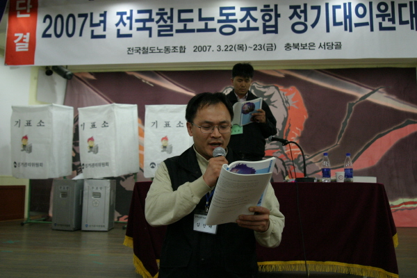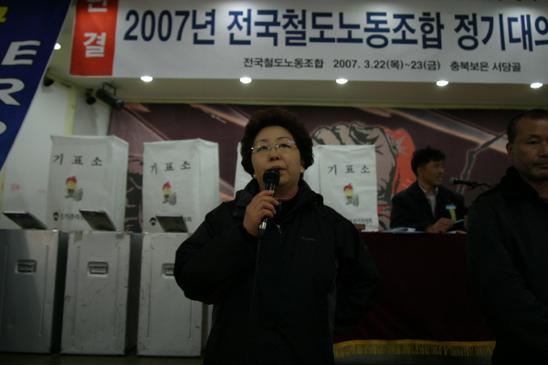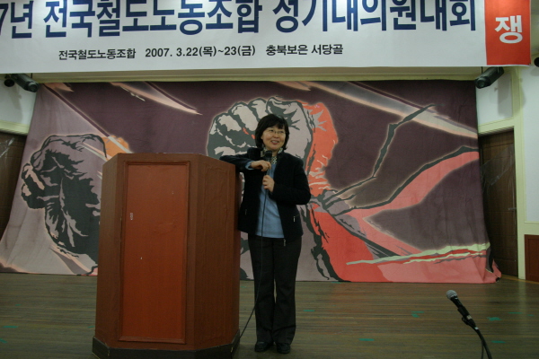 22ÀÏ ´ëȸ ù³¯¿£ 2007³â Á¤±â´ëÀÇ¿ø´ëȸ °³È¸½ÄÀÌ ÀÖ¾ú°í, ÁÖº´Çö ±³À°±¹ÀåÀÌ »çȸ¸¦ ¸Ã¾Æ ÁøÇàÇßÀ¸¸ç ù ½Ã°£¿£ ¡®¹ÎÁÖ³ëÁ¶¿îµ¿ÀÇ °úÁ¦¿Í °£ºÎÀÇ ¿ªÇÒ¡¯À» ÁÖÁ¦·Î ±èÁø¼ø ³ëµ¿ÀÚ±³À°¼¾ÅÍ ´ëÇ¥°¡ ±³À°À» Çß´Ù. ±èÁø¼ø ´ëÇ¥´Â °ÀǸ¦ ÅëÇØ ¡°³ëµ¿¿îµ¿¿¡ ´ëÇÑ ¿øÄ¢°ú ÀڽۨÀ» °®°í ½ÇõÇÏÀÚ¡±¸ç Àڽۨ ȸº¹À» °Á¶ Çß°í, ¡°¿ªµ¿ÀûÀÌ°í ½Å³ä ÀÖ´Â °£ºÎµéÀÇ È°µ¿ÀÌ Æ°Æ°ÇÏ°í °·ÂÇÑ Á¶Á÷À» ¸¸µç´Ù¡±¸ç °£ºÎµéÀÇ ÀÚ¼¼¸¦ ´çºÎÇß´Ù.