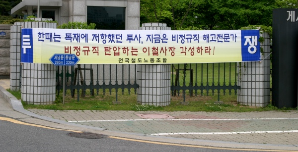 öµµ³ëÁ¶´Â ö¾ßõ¸·³ó¼ºÀ» ÅëÇØ ºñÁ¤±ÔÁ÷ÀÇ »ýÁ¸±Ç»ç¼öÅõÀïÀ» ¹úÀÌ¸ç ¡®ºñÁ¤±ÔÁ÷ ¹«±â°è¾à ÀüÈ ¹× ¿î¿ë°èȹ öȸ! ºñÁ¤±ÔÁ÷ Â÷º°Ã¶Æó¿Í Á¤±ÔÁ÷È ÀÌÇà¹æ¾È ¸¶·ÃÀ» À§ÇÑ ¼º½Ç±³¼·¡¯À» ¿ä±¸Çϰí ÀÖ´Ù. ¶ÇÇÑ °Á¦ÇذíÅõÀï ÁßÀÎ ¡®KTX¡¤»õ¸¶À»È£ ½Â¹«¿øÀ» Á÷Á¢°í¿ëÇÏ°í ´Ü°èÀû Á¤±ÔÁ÷È ÀÌÇà¹æ¾È¡¯À» ¿ä±¸Çϰí ÀÖ´Ù.