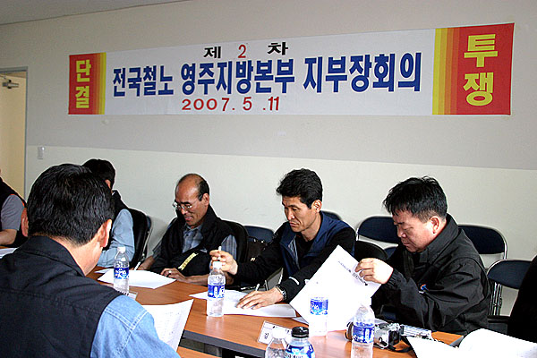 ȸÀǰ¡ 1½Ã°£À» ³Ñ¾î µ¿ÇØÂ÷·® ö¾ÏÁö±¸ Á¶ÇÕ¿ø ¿µÁÖ ¼øÈ¯±Ù¹«°Ç°ú °ü·ÃÇÑ ³íÀÇ¿¡ µé¾î¼ÀÚ º»ºÎÀå ¹× Âü¼®ÀÚµéÀº ´õ¿í ¿¶í ºÐÀ§±â°¡ À̾îÁ³´Ù. Åä·ÐÀ» ¹úÀÎ ³¡¿¡ ¿µÁÖÂ÷·® Á¶ÇÕ¿ø ÃÑȸ °³ÃÖ ¹× ÇöÀå°£´ãȸ¸¦ Áö¹æº»ºÎ¿¡¼ °³ÃÖÇÏ¿© Á¶ÇÕ¿øµéÀÇ ¿ä±¸¾ÈÀ» È®Á¤, ³ë»çÇùÀÇ¿¡ ¿ä±¸¾ÈÀ¸·Î ÀÏÁ¤À» ÁøÇàÇÒ °ÍÀ» °áÀÇÇÏ¿´´Ù.