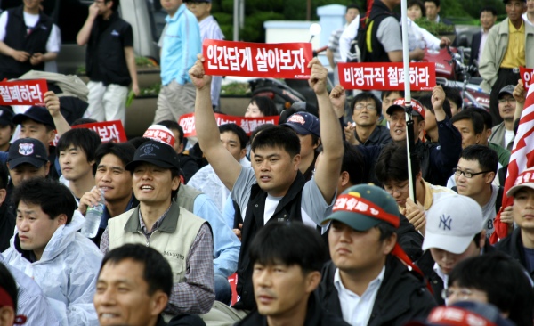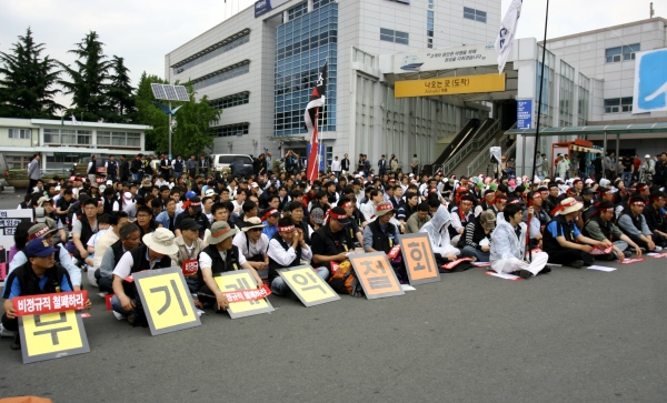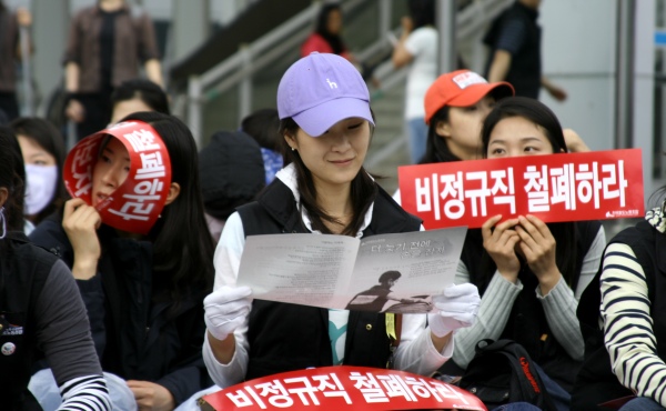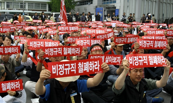 ´ëÀü¿ª ±¤Àå¿¡¼ ¸¸³ ÇÑ ºñÁ¤±ÔÁ÷ Á¶ÇÕ¿øÀº ¡°´õ ÀÌ»ó ºñÁ¤±ÔÁ÷ Â÷º°À» ¹¬°úÇÑ´Ù¸é Æò»ý ´õ·´°í Ä¡»çÇÑ »îÀ» »ì¾Æ¾ßÇÏ¸ç ´õ¾øÀÌ ¸¼Àº ³» ¾ÆÀ̵鿡°Ôµµ ºñÁ¤±ÔÁ÷ÀÇ Ã³ÂüÇÑ »îÀ» ´ë¹°¸²ÇÒ ¼ö ÀÖ´Ù¡±°í ºñÅëÇÑ ½ÉÁ¤À» ¸»Çϸç, ¡°½Çõ´Ü°ú ÇÔ²² Àû±Ø ÅõÀïÇÒ °ÍÀ̸ç, ¿ì¸®µéÀÇ ´Ü°á°ú Àú·ÂÀ¸·Î Á¤±ÔÁ÷È¿Í °í¿ë¾ÈÁ¤À» ¹Ýµå½Ã ÀïÃëÇϰڴÙ. ¶ÇÇÑ À̰ÍÀº »ç¶ûÇÏ´Â ³» °¡Á·À» À§Çؼ Àΰ£ÀûÀÎ »ýÁ¸¿¡ Àý´ëÀûÀ¸·Î ÇÊ¿äÇÑ °ÍÀÌ´Ù¡±¸ç ºÒ±¼ÀÇ °áÀǸ¦ ¹àÇû´Ù.