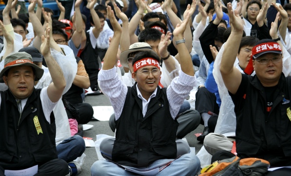 ÀÌ ÀÚ¸®¿¡¼ ÀÌÅÃÁø öµµ³ëÁ¶ ¹ÌºñÁ¶Á÷±¹ÀåÀº ¡°¹«±â°è¾à³ëµ¿Àº °í¿ë°ú ÀÓ±Ý µî¿¡¼ ¿©ÀüÈ÷ Â÷º°¹Þ´Â °ÍÀ̰í, °è¾à±â°£¸¸ Á¤ÇÏÁö ¾Ê¾ÒÀ» »ÓÀÌÁö ±Ù¹«½ÇÀûÆò°¡, ¾÷¹«·® º¯È, ¿¹»ê°¨Ãà, Á÷Á¦¿Í Á¤¿ø º¯°æ µî¿¡ ÀÇÇØ ¾ðÁ¦¶óµµ °è¾àÇØÁö(ÇØ°í)°¡ °¡´ÉÇØ »ó½ÃÀû ±¸Á¶Á¶Á¤ ´ë»óÀÌ µÉ °Í¡±À̶ó °Á¶Çϰí, ¡°³ëµ¿ÀÚÀÇ ÀǸ®¿Í ´Ü°á·Î¼ Áú±â°Ô ÅõÀïÇØ¼ ´õ·´°í Ä¡»çÇÑ ºñÁ¤±ÔÁ÷À» ÀÌ ¶¥¿¡¼ ¹Ýµå½Ã ¾ø¾Ö¾ß ÇÑ´Ù¡±°í Á¶ÇÕ¿ø µ¿Áöµé¿¡°Ô °·ÂÈ÷ È£¼ÒÇß´Ù.