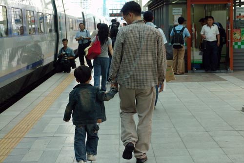 ktx °´½Ç¾È¿¡¼ Ãâ¹ßÇϱâ Àü ¼±Àü¹°À» ²È°í ÀÖ´Ù. |