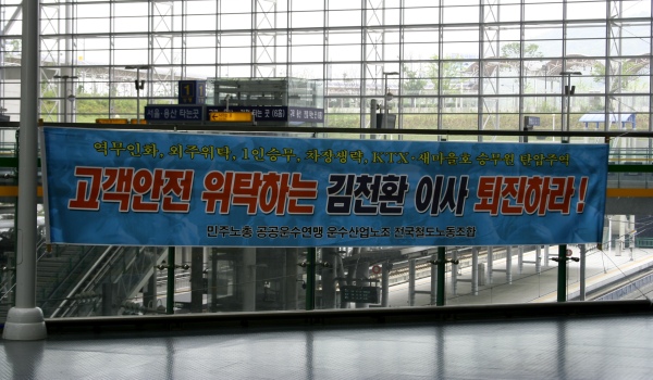 ÇÑÆí ±³¼· ½ÃÀÛ Àü¿¡ ¼¿ïÁö»ç ¾Õ¿¡¼ °ø°ø¿î¼ö¿¬¸ÍÀÌ ¡®KTX¡¤»õ¸¶À»È£½Â¹«¿ø ´Ü½ÄÅõÀ¿¡ °áÇÕÇϱâ À§ÇÑ ¿¬´ëÁýȸ¸¦ ÇÑ´Ù´Â ÀÌÀ¯·Î ÀÌö »çÀåÀÌ 17ºÐ ´Ê°Ô Âü¼®Çß´Ù. ÀÌö »çÀåÀº ÀÌ¿Í °°Àº ÀÌÀ¯·Î Áö³ 2Â÷¿Í 3Â÷ º»±³¼·¿¡µµ 2~30ºÐ°¡·® ´Ê°Ô Âü¼®ÇÑ ¹Ù ÀÖ´Ù.