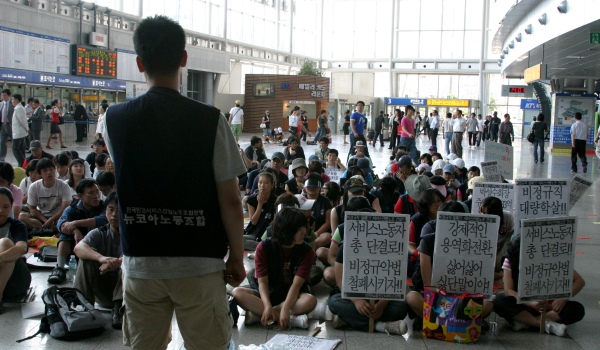 ¹Î¼¼¿ø ÁöºÎÀåÀÇ ¸»¿¡¼ 500ÀÏÀÌ ´Ù µÇ¾î°¡´Â KTX½Â¹«¿øµéÀÇ ÅõÀïÀÌ º¶û ³¡À¸·Î ³»¸ô¸®°í ÀÖ´Â °ÍÀÌ ´À²¸Áø´Ù. À̵éÀÇ ÅõÀïÀº Àΰ£´Ù¿î »ýÁ¸À» À§ÇÑ Àý¹ÚÇÔ ±× ÀÚüÀÎ °ÍÀÌ´Ù.