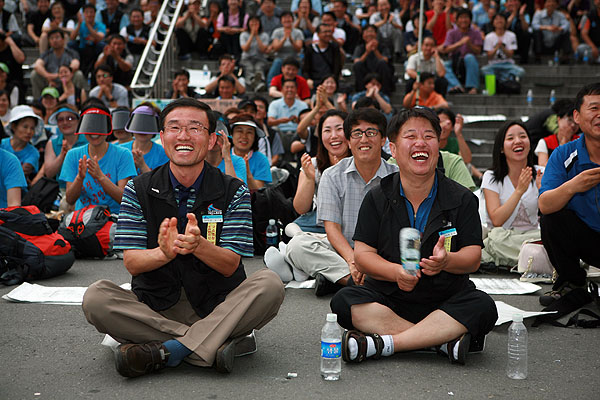 À̳¯ ±¤Àå¿¡´Â öµµ³ëÁ¶ Á¶ÇÕ¿øÀ» ºñ·ÔÇØ °ø°ø¿î¼ö¿¬¸Í Á¶ÇÕ¿ø°ú °¢°èÀÇ ¿¬´ë´ÜüµéÀÌ ´ë°Å Âü¿©ÇÏ¿© ¶æ ±íÀº ÀÚ¸®°¡ µÇ¾ú´Ù. ¶ÇÇÑ ÀÌ·£µå±×·ìÀÇ Æø·Â°ú ź¾Ð¿¡ ¸Â¼ ¸ÅÀå Á¡°ÅÅõÀï ÁßÀÎ ÀÌ·£µåÀϹݳëÁ¶ Á¶ÇÕ¿øµéµµ ÇÔ²²ÇØ ´«±æÀ» ²ø¾ú´Ù. °áÀÇ´ëȸ Âü¿©ÀÚµéÀº ÀÌ·£µå µ¿Áöµé¿¡°Ô ÅõÀï ½Â¸®¸¦ À§ÇØ Èû³»¶ó´Â ÀǹÌÀÇ ¶ß°Å¿î ¹Ú¼ö·Î ±×µéÀ» ¸ÂÀÌÇØ ÁÖ¾ú´Ù.