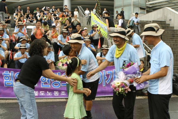 8¿ù 9ÀÏ ¿ÀÀü¿¡ ¼ö»ö¿ªÀ» Ãâ¹ßÇÑ µµº¸ÅõÀï´ÜÀº °¡ÁÂ¿Í ½ÅÃÌ¿ªÀ» °ÅÃÄ ¼¿ïÁö¿ª ÇöÀå¼øÈ¸¸¦ ³¡À¸·Î ¸¶Ä§¿¡ ¼¿ï¿ª±¤Àå¿¡ µµÂøÇß´Ù. Ã¶ÇØÅõ ´ëÀåÁ¤ÀÇ ¸¶¹«¸®¿Í 39ÀÏÀÇ ÅõÀïÁ¤½ÅÀ» ÇÔ²² ±â¸®±â À§ÇØ ±¤Àå¿¡¼ ±â´Ù¸®°í ÀÖ´ø Á¶ÇÕ¿ø µ¿ÁöµéÀº µµº¸ÅõÀï´ÜÀ» ¶ß°Å¿î ¹Ú¼ö·Î ȯ¿µÇß´Ù. ¼¿ï¿ª Á¶ÇÕ¿øµéÀº Àå¹Ì²ÉÀ» ÁغñÇØ ²Éº¸´Ù ¾Æ¸§´Ù¿î ¹Ì¼Ò·Î ÇØ°íµ¿Áöµé¿¡°Ô ÇÑ ¼ÛÀ̾¿ ³ª´²ÁÖ¾ú´Ù. °¡Á·´ëÃ¥À§´Â ¼Ò¹ÚÇÑ ²É´Ù¹ßÀ» ÁغñÇØ ¿¬ÀåÀÚÀÎ À¯¿¬»ó, Àü»ó¿î, ¼Ûº´°æ µ¿Áö¿¡°Ô Àü´ÞÇϱ⵵ Çß´Ù.
