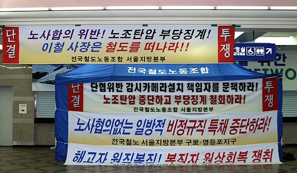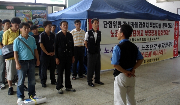 öµµ°ø»ç°¡ ºÒ¹ý '¸ô·¡Ä«¸Þ¶ó'·Î ´äÇùÀ» À§¹ÝÇÏ°í ³ëÁ¶¸¦ ž¾ÐÇÑ °ü¸®Àڵ鿡 ¸Â¼ ÅõÀïÇϰí ÀÖ´Â ¼¿ïÀü±â À±´ë¿ë ÁöºÎÀå°ú °ø»çÀÇ ÀϹæÀûÀÎ Àη¿î¿ë¿¡ ¸Â¼ ´ÜÇù¿¡ ÀÇÇÑ ³ë»çÇùÀÇ»çÇ×ÀÎ ÀӽÿÂ÷ °Ë¼ö¸¦ °ÅºÎÇϰí ÀÖ´Â ¼¿ïÂ÷·® ¹Úâ½Ä ÁöºÎÀå¿¡°Ô Áß¡°è ÀǰáÀ» ¹ßºÎÇ߱⠶§¹®ÀÌ´Ù.