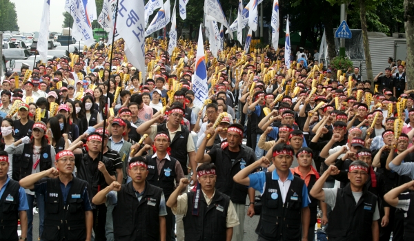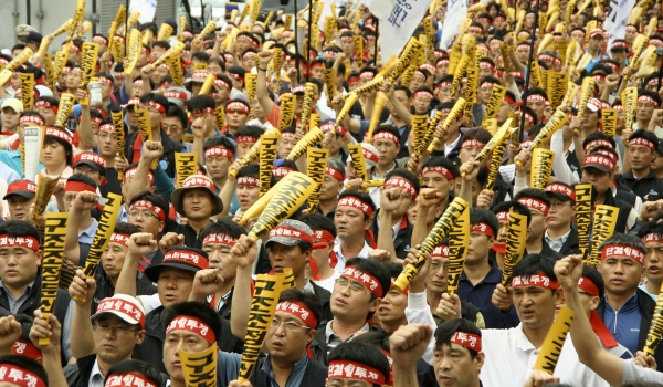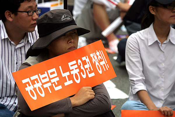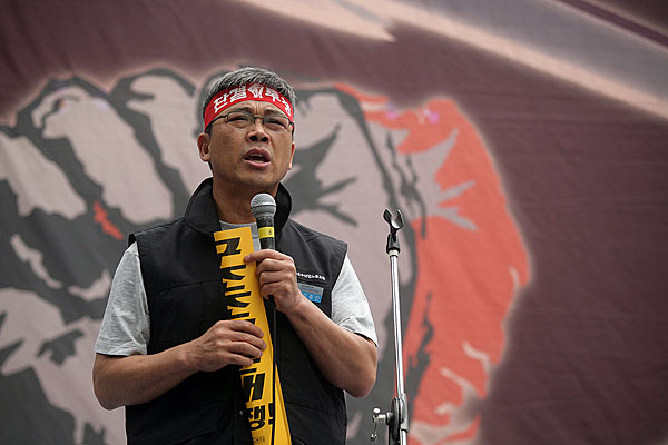 ¿¬´ë»ç¿¡ ³ª¼± ȹ°¿¬´ë ±è´Þ½Ä º»ºÎÀåÀº ¡°±â¸¸Àû Á¤±Ç°ú ±Ø¾ÇÇÑ ÀÚº»¿¡ Áþ´¸° ȹ°¿¬´ë µ¿ÁöµéÀÇ »îÀº ±×¾ß¸»·Î ¸·ÀåÀλý°ú ´Ù¸§¾ø´Ù¡±¸ç ¡°Ã¶µµ µ¿ÁöµéÀÌ ÇØ°íµ¿Áöµé°ú ºñÁ¤±ÔÁ÷ ¹®Á¦¸¦ ¹æ°üÇÑ´Ù¸é, ³ëµ¿Á¶ÇÕÀÇ ±Ùº»ÀÌ À§Å·οöÁö°Ô µÇ°í Á¤±Ç°ú ÀÚº» ¾Õ¿¡ ¹«¸ ²ÝÀ» ¼ö¹Û¿¡ ¾øÀ¸¸ç ȹ° µ¿Áöµéó·³ ¸·ÀåÀλýÀÇ ³ª¶ôÀ¸·Î ¶³¾îÁú ¼öµµ ÀÖ´Ù¡±°í ¸»Çß´Ù. ¶Ç ¡°ÇÇÇÒ ¼ö ¾ø´Â ½Î¿òÀ̶ó¸é ´çÂ÷°í ÈûÀÖ°Ô ¹ú¿©¼ ÀÌ ¶¥¿¡ Á¤ÀǸ¦ ¹Ù·Î¼¼¿ì°í ³ëµ¿ÀÚ ¼¼»óÀ» ¾Õ´ç±âÀÚ¡±°í ¸»Çß´Ù.