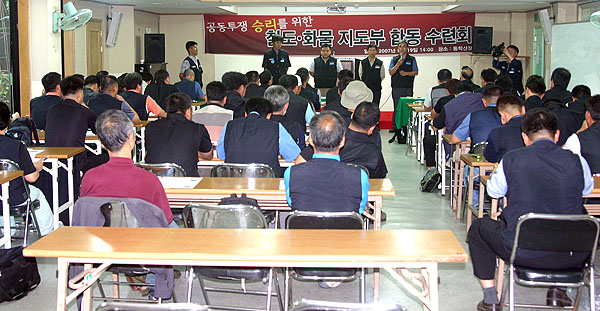 ±èÇü±Õ ±³¼±½ÇÀåÀÇ »çȸ·Î °£ºÎ ÇÕµ¿¼ö·Ãȸ´Â ³ëµ¿ÀǷʸ¦ ½ÃÀÛÀ¸·Î ¿©´Â¸¶´çÀÌ ÁøÇàµÇ¾ú´Ù. öµµ³ëÁ¶¿Í ȹ°¿¬´ë´Â óÀ½ ÀÚ¸®¹èÄ¡ºÎÅÍ ±Ç¿ªº°·Î ÇÔ²² ¾Éµµ·Ï ÇÏ¿© Á¤¼Àû ¼ÒÅëÀÇ °è±â·Î »ï¾Ò´Ù. °¢ Á¶Á÷ÀÇ ´ëÇ¥µéÀº ¼Ò¼Ó °£ºÎµéÀ» Áö¿ªº°·Î ÀÏÀÏÀÌ ¼Ò°³Çϰí, µ¹¾Æ°¡¸ç ´ëÇ¥ Àλ縦 ÁøÇàÇß´Ù.