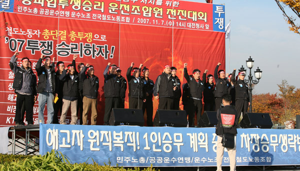 ±×·¯³ª ¿îÀüÁ¶ÇÕ¿ø µ¿ÁöµéÀº Á÷±ÇÁßÀç¿Í °ø»çÀÇ Çù¹Ú¿¡ ±¼ÇÏÁö ¾Ê°í ½Ã¹ü¿îÇàÀ» Ä¡¿ÇÑ ÅõÀïÀ¸·Î ÀúÁöÇß´Ù. 11¿ù 2ÀÏ ±ä±ÞÁöºÎÀåȸÀǸ¦ ÅëÇØ ½Ã¹ü¿îÇà ÀúÁöÅõÀïÀ» ÃÑÆÄ¾÷ÅõÀï Àü¼ú·Î ÀüȯÇÒ °ÍÀ» °áÀÇÇß´Ù. °ø»çÀÇ ¿¹»ó°ú ´Þ¸® ¿îÀüÁ¶ÇÕ¿ø µ¿ÁöµéÀÌ ÆÄ¾÷ÅõÀïÀÇ ÃÖ¼±ºÀÀÓÀ» ÀÚÀÓÇÏ°Ô µÈ °ÍÀÌ´Ù.