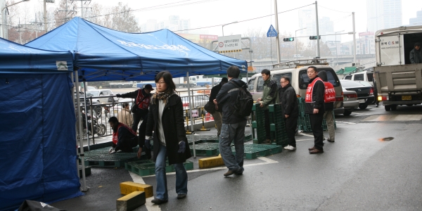 À̳¯ õ¸·³ó¼º¿¡ ¾Õ¼ Ã¶ÇØÅõ´Â ¼¿ïÁö¿ª ÁöºÎÀåÀ» ºñ·ÔÇØ Á¶ÇÕ¿øµé°ú ÇÔ²² ¡®¿øÁ÷º¹Á÷ ¿ø»óȸº¹À» Ã˱¸¡¯ÇÏ´Â Áýȸ¸¦ ¿¾ú´Ù. ÁýȸÀå¿£ Âù¹Ù¶÷ÀÌ ¸ô¾ÆÄ¡´Â °¡¿îµ¥ ÁÖº¯ ½Ã¹ÎµéÀº ¿Ê±êÀ» ´Ü´ÜÈ÷ ¿©¹Ì°í ¾î±ú¸¦ ¿òÃ÷¸®°í ÀÖ¾úÁö¸¸, ÁýȸÀå¿¡ µ¿ÁöµéÀº ³Ë³ËÇÑ Ç°°ú µûµíÇÑ ¾î±ú°¡ ¾î¿ì·¯Á® ÃßÀ§¸¦ À̰ܳ»°í ÀÖ¾ú´Ù.