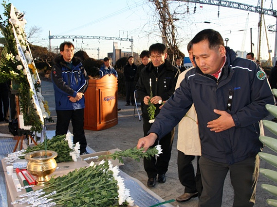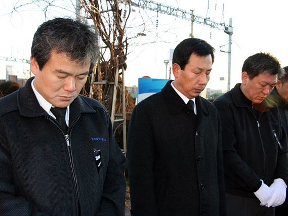 Á¶»ç¸¦ ¸ðµÎ ¸¶Ä¡°í Âü¼®ÀÚÀÇ ÇåȰ¡ ÁøÇàµÇ¾ú´Ù. öµµ³ëÁ¶ ȲÁ¤¿ì À§¿øÀå, öµµ°ø»ç ¹ÚÃá¼± Áö»çÀåÀ» ¼±µÎ·Î µ¿·áÁ÷¿ø, Á¶¹®°´µéÀÇ ³¡¾ø´Â Á¶¹®Çà·ÄÀÌ À̾îÁ³´Ù.