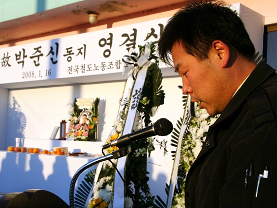 ¹¬³ä°ú À¯°¡Á·ÀÇ ÇåÈÀç¹è, °íÀÎÀÇ ¾à·ÂÀÌ ¼Ò°³µÇ¾ú´Ù. ´ÙÀ½ Á¶»ç°¡ À̾îÁ³´Ù. °¡Àå ¸ÕÀú ³ª¼± Àü±¹Ã¶µµ³ëµ¿Á¶ÇÕ È²Á¤¿ì À§¿øÀåÀº Á¶»ç³¶µ¶¿¡¼, ¡°¿À´Ã ¿ì¸®´Â ³Ê¹«³ª ¼ÒÁßÇß´ø µ¿Áö ÇѺÐÀ» ¿µ¿øÈ÷ °¡½¿¼Ó¿¡ ¹¯°Ô µÇ¾ú½À´Ï´Ù... µ¿Áö¸¦ ±â¾ïÇÕ´Ï´Ù. ͺ ¹ÚÁؽе¿Áö´Â °¡½¿ÀÌ ¶ß°Å¿ü´ø »ç¶÷À̾ú°í, ³Ê¹«³ª Çå½ÅÀûÀÎ »ç¶÷À̾ú½À´Ï´Ù. °¡Àå ¾î·Á¿î ¶§, °¡Àå Èûµç °÷¿¡¼ ±ÄÀº ÀÏÀ» µµ¸Ã¾Æ ÇÏ´ø ±×·± µ¿Áö¿´½À´Ï´Ù... µ¿Áö´Â ¶°³µÁö¸¸ ¿ì¸®´Â µ¿Áö¸¦ ÀØÁö ¾ÊÀ» °Ì´Ï´Ù. µ¿ÁöÀÇ ¿Á¤°ú Çå½Å¼ºÀ» ±â¾ïÇϰí, µ¿ÁöÀÇ ¿°¿øÀ» ¿ì¸®°¡ À̾°Ú½À´Ï´Ù¡±¸ç °¡½¿¾ÆÇÁ°Ô °íÀÎÀÇ ³ÌÀ» ±â¸®¾ú´Ù. ´ÙÀ½ öµµ°ø»ç °¿øÁö»ç ¹ÚÃá¼± Áö»çÀå, ÀýÄ£Çß´ø µ¿·á À¯º¹Çö µ¿Áö, À¯Á·À» ´ëÇ¥ÇÏ¿© °íÀÎÀÇ Å« Çü´Ô²²¼ Á¶»ç¸¦ À̾´Ù.