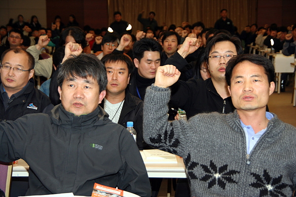Áö³ 3¿ù 27-28ÀÏ È«Ãµ ´ë¸íÄܵµ ȸÀǽǿ¡¼ öµµ³ëÁ¶ 2008³â Á¤±â´ëÀÇ¿ø´ëȸ°¡ ¿·È´Ù. À̳¯ ´ëÀÇ¿ø´ëȸ´Â 110¿©¸íÀÇ ´ëÀÇ¿øµéÀÌ ¸ð¿© 2008³â »ç¾÷°èȹ ¹× KTX¡¤»õ¸¶À» ½Â¹«¿ø ±¸È£¸¦ À§ÇÑ °áÀÇ, ¼º°ú±Þ ±ÕµîºÐ¹è Ưº°°áÀÇ µî ÁÖ¿ä ¾È°ÇÀ» ½ÉÀÇ °áÁ¤Çß´Ù.