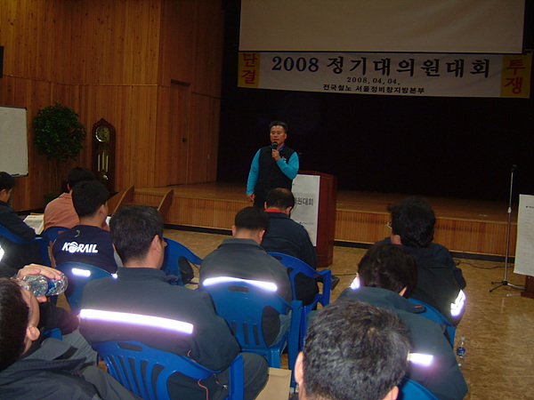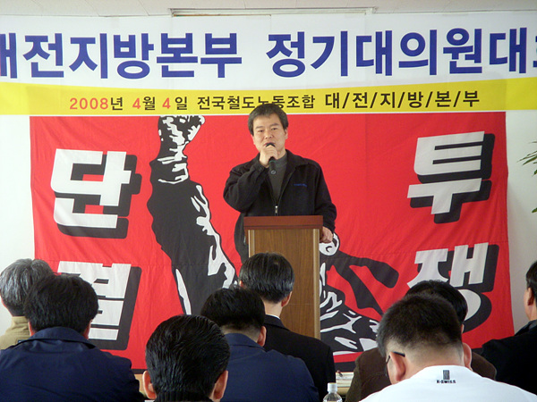 ±è¿µ¸¸ º»ºÎÀåÀº ´ëȸ»ç¿¡¼ ¡°2008³â. ½Ã´ë°¡ ¿ä±¸ÇÑ ´ë·Î ¿ì¸®¸¸ÀÇ Çö½Ç¿¡ ÁýÂøÇÏÁö ¸»°í Àüü ³ëµ¿ÀÚµéÀÇ ´ëµ¿´Ü°á ÇÏÀÚ¡±, ¡°Á¤ºÎ¿Í °ø»çÀÇ ¹Î¿µÈ,»ó¾÷È Á¤Ã¥¿¡ ÁúÁú ²ø·Á ´Ù´Ò°ÍÀÌ ¾Æ´Ï¶ó ¿ì¸® ½º½º·Î°¡ öµµ»ê¾÷´ë¾ÈÀ» ¸¶·ÃÇϱâ À§ÇØ ²÷ÀÓ¾øÀÌ °í¹ÎÇϰí Åä·ÐÇÏÀÚ¡±¸ç °£ºÎµéÀÇ º¯È¸¦ °Åµì °Á¶Çß´Ù.