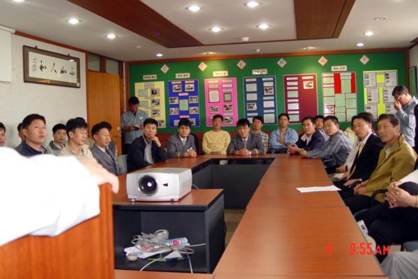 ¿µÁÖ¿Â÷ ±³¾ç½Ç¿¡¼ Á¶ÇÕ¿ø°£´ãȸ¸¦ Çϰí ÀÖ´Ù. |