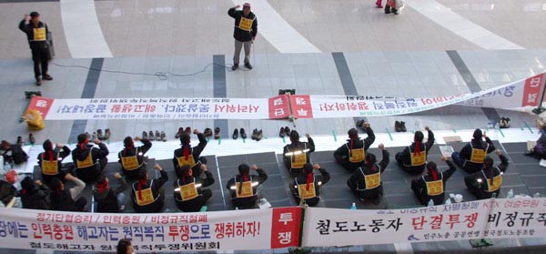 öµµÇذíÀÚ ¿øÁ÷º¹Á÷ÅõÀïÀ§¿øÈ¸(Ã¶ÇØÅõ)°¡ ¿ë»ê ¿ª»ç ´ëÇսǿ¡¼ ´Ü½Ä³ó¼ºÀ» ½ÃÀÛÇÏ¿´´Ù. 2005³â 11¿ù ¿ÀÀü 11½Ã ¾à½ÄÁýȸ¸¦ ¸¶Ä£ ÈÄ Ã¶ÇØÅõ µ¿ÁöµéÀº ¿ë»ê¿ª¿¡¼ ´õ ÀÌ»ó ÇØ°íÀÚ º¹Á÷À» ¿ä±¸ÇÏ´Â °Íµµ ¼·´´Ù¸é¼ Á×À½À» °¢¿ÀÇϰí ÇØ°íÀÚ ¿øÁ÷º¹Á÷À» ÀÌ·ç¾î³»°Ú´Ù´Â °áÀÇ·Î ´Ü½Ä¿¡ ÀÓÇÑ´Ù°í ÇÏ¿´´Ù.