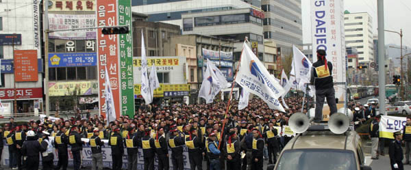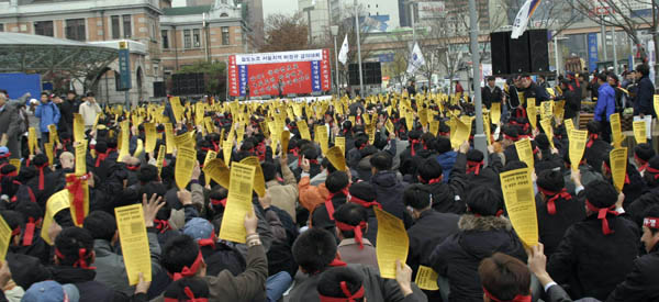 ºÎÁöº» ¼ÕÇÑ¿µº»ºÎÀåÀº "°ø»ç¿Í Á¤ºÎ´Â ¿ì¸®ÀÇ ¿ä±¸¸¦ ¹«½ÃÇÑ Ã¤ öµµ»ó¾÷È, ¿ÜÁÖÈ, ºñÁ¤±ÔÁ÷ È®´ë, ±¸Á¶Á¶Á¤À¸·Î È´äÇϰí ÀÖ´Ù¡° ¸ç ¡±Áö±ÝÀÇ Çö½Ç¿¡¼ öµµ³ëµ¿ÀÚ´Â 2¸¸5õÀÇ ´Ü°áµÈ Èû°ú ÃÑ·ÂÅõÀïÀ¸·Î ¹Ýµå½Ã ¿ì¸®ÀÇ ¿ä±¸¸¦ ÀïÃëÇØ¾ß ÇÒ °Í¡° À̶ó ÇÏ¿´´Ù.