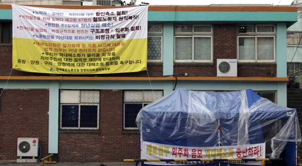 û·®¸®¿ª °ü¸®ÁöºÎ ȲÁ¤¿ìÁöºÎÀåÀº õ¸·À» Ä¡¸é¼ ¡° öµµ³ëµ¿ÀÚµéÀº û·®¸®-´ö¼Ò°£ ¿ÜÁÖÈ ¹®Á¦»Ó¸¸ÀÌ ¾Æ´Ï¶ó öµµÀüü¸¦ µÚ Èçµé°í ÀÖ´Â ¿ª ±×·ìÈ °èȹ¿¡ Á÷¸éÇØ ÀÖ´Ù¡± ¸é¼ ¡°¿ª ±×·ìÈ´Â ¿ªÀÇ ±¸Á¶Á¶Á¤ ¹®Á¦¸¸ÀÌ ¾Æ´Ï¶ó¡± ¡°Àü Á÷Á¾¿¡ ¸ðµÎ ¿¬°áµÇ¾îÀÖ´Â ¹®Á¦¶ó¸é¼¡± û·®¸® Áö±¸Â÷¿øÀÇ ´ëÀÀÀº ¹°·ÐÀ̰í öµµ³ëµ¿ÀÚ ÀüüÀÇ ½Î¿òÀ¸·Î ¸·¾Æ³»¾ß ÇÑ´Ù°í ÇÏ¿´´Ù.