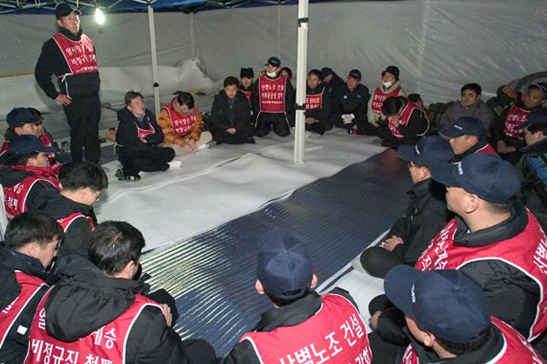 öµµ³ëÁ¶´Â ¿©Àǵµ õ¸·³ó¼ºÀå¿¡ Á¶ÇÕ ¹× Áö¹æº»ºÎ °£ºÎµéÀÌ Àû±ØÀûÀ¸·Î Âü°¡Çϰí ÀÖ´Ù. ÇöÀç 50¿©¸íÀÇ Ã¶µµ³ëµ¿ÀÚµéÀÌ ±¹È¸ ¾Õ õ¸·³ó¼ºÀå¿¡¼ ¹ã»ù³ó¼ºÀ» Çϰí ÀÖÀ¸¸ç ºñÁ¤±ÔÁ÷ °³¾Ç ¹ý¾ÈÀ» ¸·±â À§ÇÏ¿© ¹ý¾È󸮰¡ ¹«»êµÉ ¶§±îÁö ³ó¼ºÀ» °è¼ÓÇÒ °èȹÀÌ´Ù.