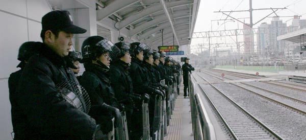 2005³â 12¿ù 16ÀÏ 1½Ã30ºÐ ÀüÅõ°æÂûº¹ÀåÀ» °®Ãá °æÂûµéÀÌ ¿ª ȨÀ» °¡µæ ¸Þ¿î ä ¹æÆÐ¿Í ¹æ¸ÁÀÌ, Çï¸äÀ» ¾´ °æÂûµéÀÌ Ã¶µµ³ëµ¿ÀÚ¸¦ ±â´Ù¸®°í ÀÖ¾ú´Ù.