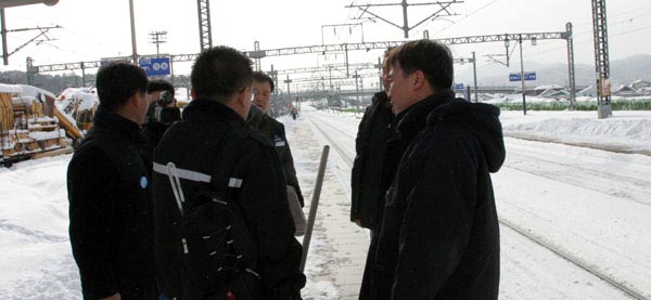 ¼±·Î¹Ý, Àü±â¹Ý, ¿ª¹«¿ø, ¼ö¼Û¿ø °¡¸± °Í ¾øÀÌ ºøÀÚ·ç¿Í ´«»ðÀ» µé°í Æ÷ÀÎÆ®¿¡ ³»¸° ´«À» Ä¡¿ì±â ¹Ù»Ú´Ù. Á¦¼³Â÷°¡ ³»¸®´Â ´«À» Ä¡¿ì°í Æ÷ÀÎÆ®¿¡ ¾óÀº ´«À» °¡½º Åä¿ÀÄ¡·Î ³ìÀÌ¸é¼ Æ÷ÀÎÆ®¸¦ ¸ÂÃß°í ¹«Àü±â·Î Åë°ú¸¦ ¾Ë¸®ÀÚ ¿Â÷°¡ ¿ªÀ» ºüÁ®³ª°£´Ù.