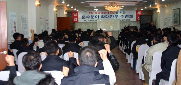±èÀçÇÏ ±³À°À§¿øÈ¸ ´ëÇ¥´Â ¡°2¿ù ÃÑÆÄ¾÷ÀÇ ½Â¸®´Â öµµ³ëµ¿ÀÚÀÇ »ýÁ¸±ÇÀ» ÁöŰ´À³Ä, Æ÷±âÇÏ´À³ÄÀÇ Á¤Á¡¿¡ ¼ ÀÖ´Ù¡±¸é¼ ¡°ÃÑÆÄ¾÷À» ½Â¸®Çϱâ À§Çؼ´Â ¿Ï°È÷ Àü¼±À» Ä¡°í Àü Á¶ÇÕ¿øÀÌ ÅõÀï¿¡ ³ª¼¾ß ÇÑ´Ù¡± °í ¸»Çß´Ù. ¶Ç ¡°¿¬´ëÀü¼±À» ³ÐÈ÷°í °ø¼¼ÀûÀ¸·Î ÅõÀïÀ» ÇØ¾ß ÇÑ´Ù¡±°í °Á¶Çß´Ù.