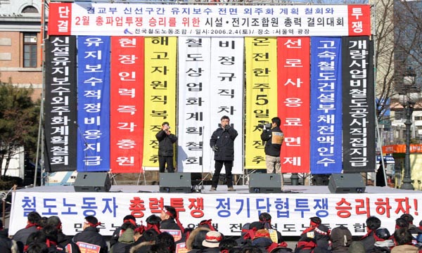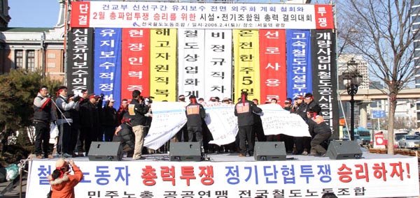 ½Ã¼³, Àü±â Á¶ÇÕ¿ø Àϵ¿Àº ±¹¹ÎÀÇ ¾ÈÀüÀ» Æ÷±âÇÑ Ã¶µµ»ê¾÷¹ßÀü°èȹ¾È, °Ç±³ºÎ öµµÁ¤Ã¥À» ÀÎÁ¤ÇÒ ¼ö ¾ø´Ù. ÀÌ ÀÚ¸®¿¡ ¸ðÀÎ ¿ì¸®´Â Á¤ºÎ¿¡¼ Á¹¼ÓÀûÀ¸·Î ó¸®ÇÏ·Á´Â À߸øµÈ öµµÁ¤Ã¥ ÃßÁøÀÇ Áß´ÜÀ» ¿ä±¸ÇÑ´Ù. ¶Ç Á¤ºÎ°¡ ³Ê¹«³ª ´ç¿¬ÇÑ Ã¶µµ³ëµ¿ÀÚÀÇ ¿ä±¸¿¡µµ ºÒ±¸ÇÏ°í °ÇàÇÑ´Ù¸é ¿ì¸®´Â ¸ñ¼ûÀ» °Ç ÃÑÅõÀïÀ¸·Î ¸Â´ëÀÀ ÇÒ °ÍÀÓÀ» ¹àÈù´Ù.