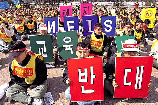 Àü±³Á¶ NEIS ¹Ý´ëÅõÀï : NEIS ¹Ý´ëÅõÀïÀº ERP¿¡ ¸Â¼¼ ±³À° ³ëµ¿ÀÚµéÀÌ ÅõÀïÀ¸·Î öÆó½ÃŲ ½Î¿òÀÌ´Ù. ³×À̽º´Â ±³À° ERP·Î¼ ÇöÀç öµµ°ø»ç¿Í ¶È°°ÀÌ »ï¼º SDS°¡ ±¸ÃàÀ» ¸Ã¾Ò´Âµ¥, Àü±³Á¶´Â 2003³â 1³â°£ ÅõÀïÀ» ÅëÇØ¼ ³×À̽º¸¦ öÆó½ÃÄ×´Ù.