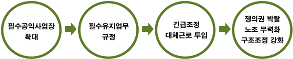 ±×·¯³ª ¿ª½Ã ¿ì¸® ¿¬¸ÍÀ¸·Î¼´Â °¡Àå Å« °ÍÀÌ Çʼö°øÀÍ»ç¾÷Àå¹®Á¦ÀÌ´Ù. ÇöÇà¹ý»ó Çʼö°øÀÍ»ç¾÷Àå¿¡ ´ëÇØ¼´Â Á÷±ÇÁßÀç ¶§¹®¿¡ »ç½Ç»ó ÇÕ¹ýÆÄ¾÷ÀÌ ºÒ°¡´ÉÇØ¼ ÇØ´ç ³ëÁ¶ÀÇ °·ÂÇÑ ¹Ý¹ßÀº ¹°·Ð ¿Ü±¹³ëµ¿´Üü·ÎºÎÅÍ °Å¼¾ ºñ³À» ¹Þ¾Æ ¿Ô´Ù. ÀÌ¿¡ ´ëÇØ¼´Â ÆóÁö¸¸ÀÌ ¼±ÁøÈ¹æ¾ÈÀ̶ó´Â °ø°¨´ë°¡ Çü¼ºµÇ¾î ÀÖ¾ú´Ù. ±×·±µ¥ ÀÔ¹ý¾È¿¡¼´Â Á÷±ÇÁßÀ縦 ÆóÁöÇÑ´Ù°í ÇÏ¸é¼ ½ÇÁ¦·Î´Â ÇʼöÀ¯Áö¾÷¹«Àǹ«Á¦µµ¸¦ µµÀÔÇÏ°í ¶Ç ´ëü±Ù·Î¸¦ Çã¿ëÇϰí ÀÖ´Ù. ±ä±ÞÁ¶Á¤Á¦µµ´Â ±×´ë·Î ³²°ÜµÎ°í ÀÖ´Ù. °á±¹ Çʼö¾÷¹«À¯Áö, ´ëü±Ù·Î, ±ä±ÞÁ¶Á¤À̶ó´Â 3ÁßÀá±ÝÀåÄ¡¸¦ ¸¸µç ²ÃÀÌ¾î¼ Á÷±ÇÁßÀçÁ¦µµº¸´Ù ¿ÀÈ÷·Á ¾ÇȵǾú´Ù. ÀÌ·± 3ÁßÀá±ÝÀåÄ¡ ¶§¹®¿¡ ¡°Çʼö°øÀÍ»ç¾÷Àå¿¡¼´Â ÆÄ¾÷ ¸ø ÇÑ´Ù = ÆÄ¾÷ ÇØº¸¾ÒÀÚ È¿°ú ¾ø´Ù.¡± ´õ±¸³ª ±× ´ë»ó »ç¾÷ÀåÀ» ÇöÀ纸´Ù ´õ ³ÐÇô¼ Áõ±â ¹× ¿Â¼ö°ø±Þ»ç¾÷, Ç×°ø¿î¼ö»ç¾÷, Ç÷¾×°ø±Þ»ç¾÷, Æó¡¤Çϼö󸮻ç¾÷±îÁö Ãß°¡·Î Æ÷ÇÔÇϰí ÀÖ´Ù.