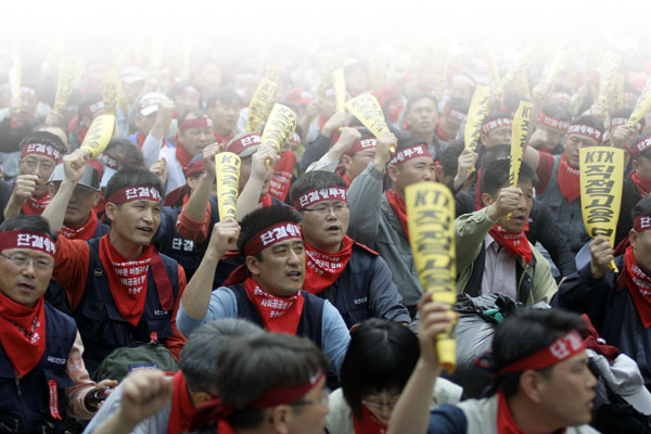 ºñÁ¤±ÔÁ÷ ¹®Á¦´Â Çѱ¹»çȸÀÇ ´ëÇ¥ÀûÀÎ »çȸ¹®Á¦ÀÌ´Ù. öµµ°ø»ç´Â ¿ÜÁÖÀ§Å¹À» ÅëÇØ öµµ ³ëµ¿ÀÚµéÀ» ÁÖº¯À¸·Î ¹Ð¾î³»°íÀÚ °èȹÇϰí ÀÖ´Ù. ºñÁ¤±ÔÁ÷ÀÇ Á¤±ÔÁ÷È ÅõÀïÀº ±Ã±ØÀûÀ¸·Î Á¤±ÔÁ÷ÀÇ °í¿ë°ú ³ëµ¿Á¶°ÇÀ» ÁöŰ´Â Áö¸§±æÀÌ´Ù. ³ëµ¿¿îµ¿ÀÇ ´ëÀÇÀÌ¸ç ¹ÎÁÖ³ëÁ¶ÀÇ ´ç¿¬ÇÑ ÀÓ¹«ÀÌ´Ù. ½ÅÀÓÁýÇàºÎ´Â ÆÄ¾÷ÅõÀï 1³âÀ» ³Ñ±â°í ÀÖ´Â KTX½Â¹«¿øµé, ¿ÜÁÖÀ§Å¹¿¡ ¸Â¼ Ä¡¿ÇÏ°Ô ³ó¼ºÅõÀïÀ» ¹úÀ̰í ÀÖ´Â »õ¸¶À»È£ ½Â¹«¿øµéÀ» ¾È°í Ãâ¹üÇß´Ù. 1³â ³Ñ°Ô ÇØ°íµÇ¾î ÅõÀïÇÏ´Â KTX Á¶ÇÕ¿øµé, 10¿© ¸íÀÇ ¼Ò¼ö°¡ ¿ÜÁÖÀ§Å¹¿¡ ¸Â¼ ÅõÀïÇÏ´Â »õ¸¶À»È£ Á¶ÇÕ¿øµé, ³ëµ¿Á¶ÇÕÀº ÀÌ ¹®Á¦µéÀ» ÃÖ¿ì¼±ÀÇ ¼±°á°úÁ¦·Î »ï¾Æ¾ß ÇÑ´Ù.