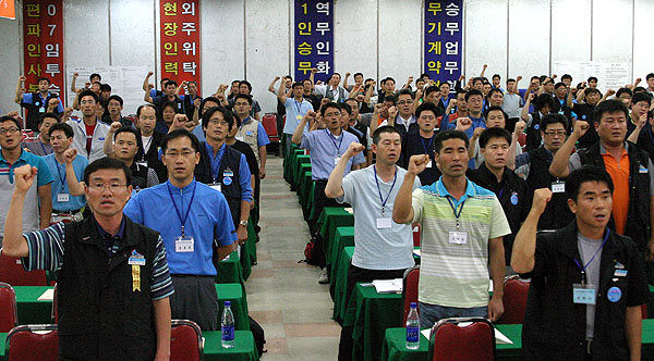 öµµ³ëÁ¶´Â ¿¶í Åä·Ð°ú ÇÔ²² ºüµíÇÏ°Ô ÁøÇàµÈ ´ëÀÇ¿ø´ëȸ¸¦ ÅëÇØ ÀÓ´ÜÇù¡¤Æ¯´ÜÇù ¿ä±¸(¾È)°ú ÅõÀï°èȹÀ» È®Á¤Çϰí ÃÑ·ÂÅõÀïÀ» Çϱâ·Î °áÀÇÇß´Ù. öµµ³ëµ¿ÀÚ´Â ¶Ç´Ù½Ã ÃÑüÀû ±¸Á¶Á¶Á¤¿¡ ¸Â¼°í »ýȰÀÓ±ÝÀ» ÀïÃëÇϱâ À§ÇØ 2007³â ÀÓ´ÜÇù¡¤Æ¯´ÜÇù ÅõÀïÀÇ ±ê¹ßÀ» ÈûÂ÷°Ô Ä¡ÄѼ¼¿ü´Ù.