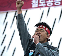 µ¿Áö ¿©·¯ºÐ, °¢°¢ÀÇ ¿ä±¸¾È°ú °øÅëÀÇ ¿ä±¸¾ÈÀ» °É°í ÇϳªÀÇ Àü¼ú·Î ½ÂȽÃÄÑ °øµ¿ÀÇ Àû°ú ½Î¿ö³À½Ã´Ù. ¸»·Î¸¸ ¼±ºÀÀÌ ¾Æ´Ñ ³ëµ¿ÀÚ ´ëÁßÀ» À§Çϰí, ¹«¾ùº¸´Ù Áö±Ý ¿©·¯ºÐÀÌ °¡Áö°í ÀÖ´Â °ÍÀ» »©¾Ñ±âÁö ¾Ê´Â ÅõÀïÀ» ¹ú¿© ³ª°©½Ã´Ù. ±× ±æ ÇѰ¡¿îµ¥ ¿ì¸® ȹ°³ëµ¿ÀÚµéÀÌ Ã¶µµ³ëµ¿ÀÚ¿Í ÇÔ²² ³ª°¥ °ÍÀÔ´Ï´Ù. ±×¸®°í ¼¼»óÀ» ¸ØÃç ¿ì¸®°¡ ½Â¸®ÇÏ´Â ³¯¿¡ µ¿Áö ¿©·¯ºÐ°ú ȯȣÇÏ¸ç ¶ß°Å¿î ½Â¸®ÀÇ ´«¹°À» È긮°Ú½À´Ï´Ù. °í¸¿½À´Ï´Ù.