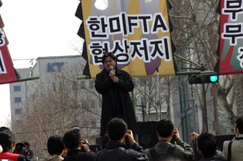 ±×·³¿¡µµ ÇѤý¹Ì FTA¸¦ ÃßÁøÇÏ´Â °ÍÀº ºÐ¸í ÀÌ ³ª¶ó Á¤ºÎÀÌ´Ù. µ¹ÆÈÀÌ ÀÇ»çÀÇ ¿ÀÁøÀÌ ¾Æ´Ï¶ó¸é ÀǵµÀûÀÎ »ç±â±ØÀÌ´Ù. ±×·¯³ª µ¹ÆÈÀÌ ÀÇ»ç °¡¼³Àº ¹Ì±¹¿¡ ¾Õ¼ FTA ü°áÀ» ÁÖÀåÇϰí ÁغñÇØ ¿Ô´Ù´Â Á¤ºÎ ½º½º·ÎÀÇ ¾ê±â¿Í ¾î±ß³¯ »Ó¸¸ ¾Æ´Ï¶ó Âü¿©Á¤ºÎ¶ó´Â ¸»ÀÌ ¹«»öÇÒ Á¤µµ·Î û¹®È¸Á¶Â÷ Á¦´ë·Î ¿Áö ¾ÊÀº Á¡À¸·Î º¸¾Æ ±â°¢ÇØ¾ß ÇÒ °¡¼³ÀÌ´Ù. ¹Ý¸é »ç±â±Ø ½Ã³ª¸®¿À °¡¼³Àº ±¹³»Á¤Ä¡ÀûÀ¸·Î ´õ¿í ¼³µæ·Â ÀÖ°Ô ´Ù°¡¿Â´Ù. Çö Á¤ºÎÀÇ ¸ñÀûÀº IMF¿Í °°Àº ¿ÜºÎÀÇ ¾Ð·ÂÀ» ÀÌ¿ëÇÏ¿© ±¹³»ÀÇ ½ÅÀÚÀ¯ÁÖÀÇÀû ±¸Á¶Á¶Á¤À» ¿Ï¼ºÇÏ°í ½Åº¸¼öÁÖÀÇÀÚµé°ú ¿¬ÇÕÇØ ÀڽŵéÀÇ Á¤±Ç ±â¹ÝÀ» ưưÇÏ°Ô ÇϰíÀÚ ÇÏ´Â °ÍÀÌ´Ù. ÀÌÁ¦ ±×µéÀÌ µÎ·Á¿öÇÏ´Â °ÍÀº ¾à¼Ò±¹À» À§ÇùÇÏ´Â °´ë±¹ÀÇ Ä§·«µµ ¾Æ´Ï¸ç »çȸ ¾ç±ØÈ¸¦ ½ÉȽÃŰ´Â ¿ÜºÎÀÇ Ãæ°Ýµµ ¾Æ´Ï´Ù. ±×µéÀÇ ÀûÀº ¿À·ÎÁö ÀڽŵéÀÇ Áö¹èüÁ¦¸¦ À§ÇùÇÏ´Â ±¹³»ÀÇ ³ëµ¿ÀÚ¿Í ¹ÎÁß¼¼·ÂÀÏ »ÓÀÌ´Ù.