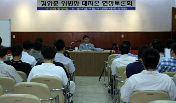 ±è¿µÈÆ À§¿øÀåÀº ÇöÀåÀ» ¼øÈ¸ÇÏ¸é¼ ¡°ÀÌÁ¦ ¿ì¸®´Â ¹ÎÁÖö³ë¸¦ °Ç¼³ÇÏ¿´´ø ÃʽÉÀ¸·Î µ¹¾Æ°£´Ù¡±¸ç ¡°ÇöÀå¿¡ ºÒ¸¸µµ ÀÖ°í ÀßÇÑ °Í º¸´Ù ¸øÇÑ °ÍÀÌ ¸¹Àº °Í¿¡ ´ëÇÑ °âÇãÇÑ ¹Ý¼ºÀ» ÅëÇÏ¿© öµµ³ëµ¿ÀÚ°¡ Çϳª µÇ¾î, ¾ÕÀ¸·Î ºÒ¾î¿À´Â ±¸Á¶Á¶Á¤ÀÇ Ä®¹Ù¶÷À» ¸·¾Æ³»´Â µ¥ ¹ÙÅÁÀÌ µÉ ¼ö ÀÖµµ·Ï Çϰڴ١±°í ¸»Çß´Ù.